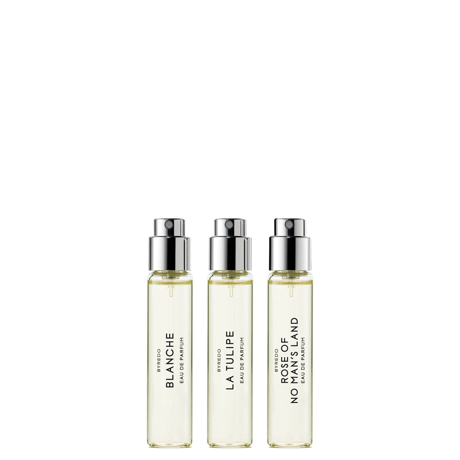 La Sélection Florale is a presentation box of three floral iconic scents: Blanche, La Tulipe and Rose of No Man’s Land, housed in 12ml vials, ideal to use with BYREDO’s functional and timeless “Nécessaire de Voyage” leather travel cases.