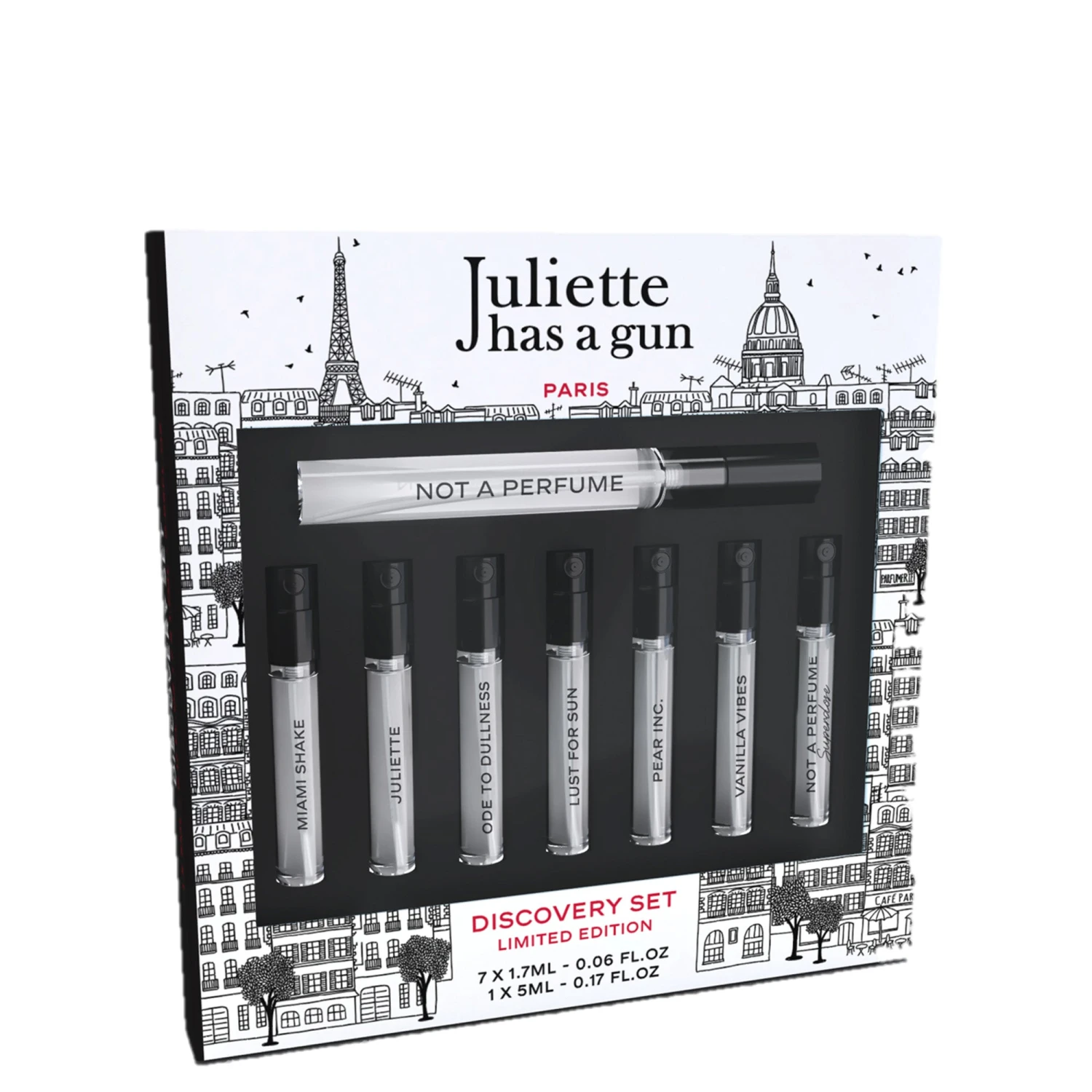 This limited edition set includes a 0.17 fl.oz (5ml) format of the brand’s iconic Not a Perfume and 0.06 fl.oz (1.7ml) formats of the following fragrances: