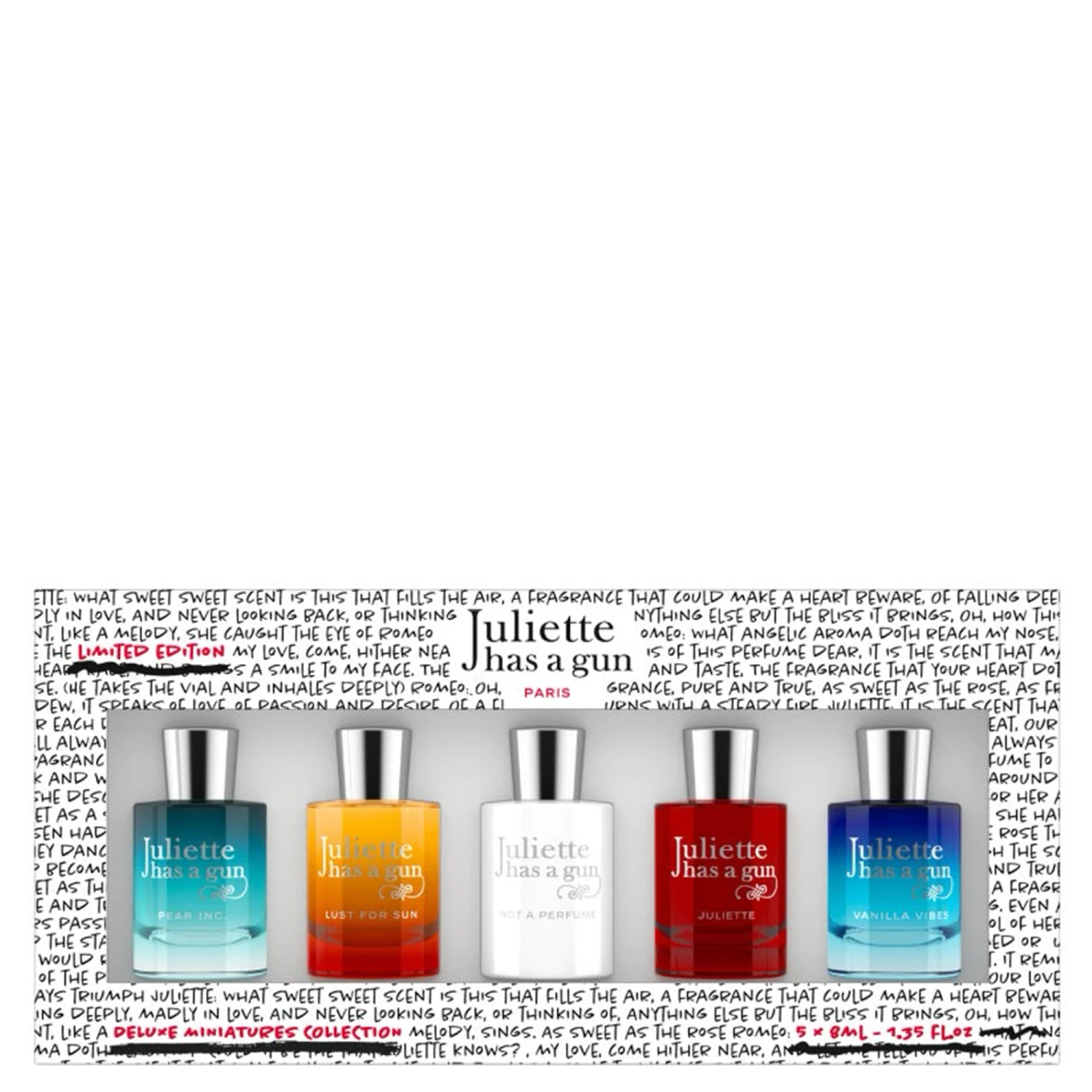 This set contains five 8ml sizes with a splash application including Juliette Has a Gun’s iconic fragrance, Not A Perfume: clean, pure, and unique. The newness called “Juliette” is a fruity floral for powerful women. Lust for Sun is a solar-floral scent inspired by summer days. Pear Inc. is a juicy pear that pays tribute to the irresistible fruit that has a taste of sunshine. Vanilla Vibes is an irresistible twist between vanilla and sea salt. These minis are so cute, you’ll want to take them everywhere you go!